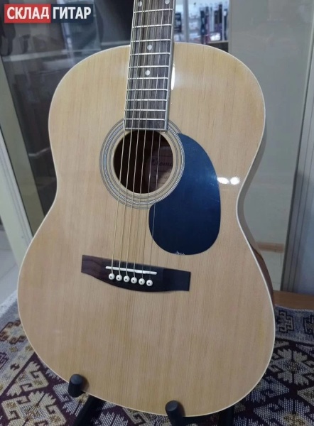 Верхняя дека - ламинат ели, задняя дека и обечайки - ламинат, гриф - клен, накладка грифа - палисандр, бридж - палисандр, колковая механика - хромированная, окантовка - пластик. Ширина грифа: 41мм