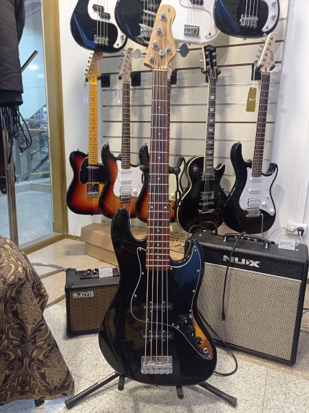 На басу установлен бридж JB Classic, два классических звукоснимателя JB, два регулятора громкости и один регулятор тона. На басу установлена никелированная колковая механика. Цвет инструмента черный.